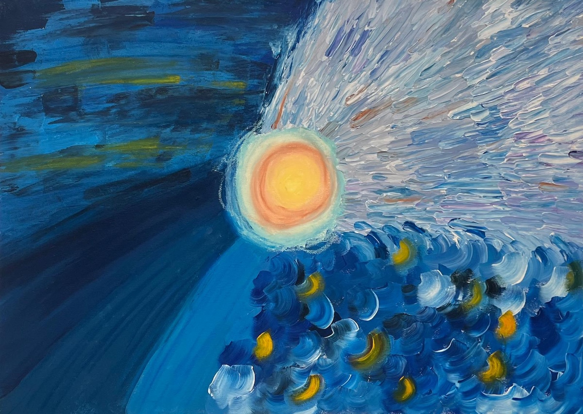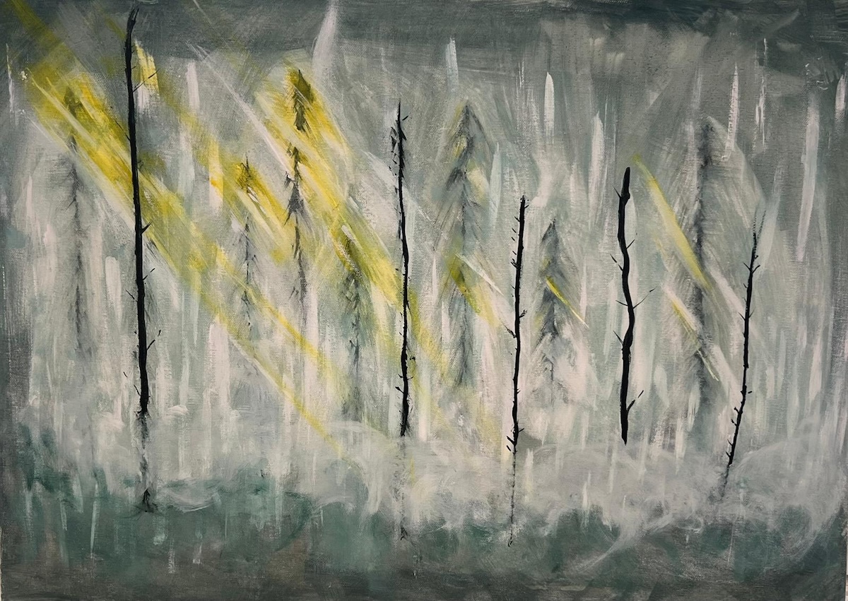 Ausstellungseröffnung Nature Disco, des Kunst-LK an Ludwigs Talenteabend zeigt abstrahierende Landschaftsbilder begleitet von Rundgängen, Zeichenworkshops der Schüler*innen und eingebettet in die Ausstellung Move it! der KuKo KunstKooperation Gießen e.V.