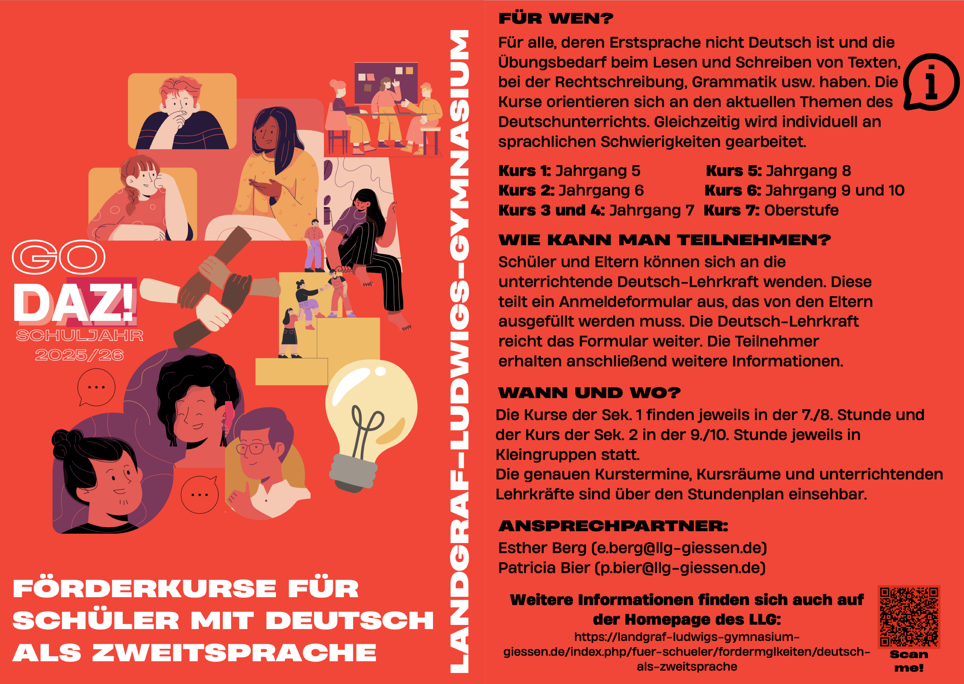 LRSAn unserem Gymnasium heißen wir alle Schülerinnen und Schüler herzlich willkommen – ganz gleich, welche Sprache sie sprechen. Besonders wichtig ist uns dabei die Unterstützung und Förderung von Schülerinnen und Schülern, die Deutsch als Zweitsprache lernen. Wir wissen, dass der Erwerb einer neuen Sprache eine Herausforderung sein kann, und möchten unseren Lernenden die bestmögliche Hilfe bieten, um sich in unserer Schulgemeinschaft wohlzufühlen, erfolgreich zu lernen und sich bestmöglich zu entwickeln.