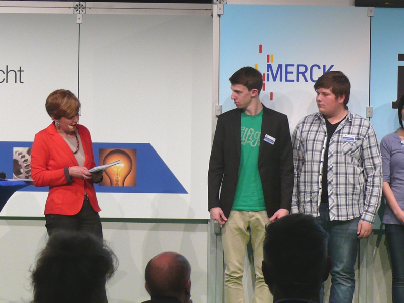 In Anwesenheit der hessischen Kultusministerin Nicola Beer würdigte die Jury ihr Projekt „Brikettierung von Laub“ als einen Beitrag zur Energiewende. Jeden Herbst fallen große Mengen an Straßenlaub an, die von Stadtreinigungen und Bürgern aufgesammelt und kompostiert werden. Die beiden Oberstufenschüler entwarfen mit Hilfe der Jugendwerkstatt Gießen eine manuell betriebene Maschine um dieses Laub zu Briketts zu verarbeiten.