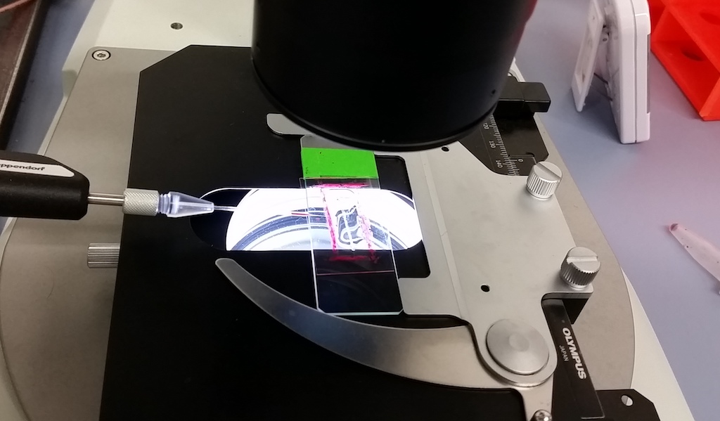 Sie erhielten Einblick in die tägliche Arbeit der Forscher und Forscherinnen: In der Injektionsstation konnten sie die Gentransfermethode Mikroinjektion an Insektenembryonen praktisch durchführen, sie lernten dann wie man mittels Fluoreszenzmikroskopie den Gentransfer überprüfen kann. Sie führten praktische Übungen zu Geschlechtertrennung (sexing) von Insekten durch und konnten in der Aufzuchtstation die verschiedenen Entwicklungsstadien der Mittelmeerfruchtfliege beobachten.