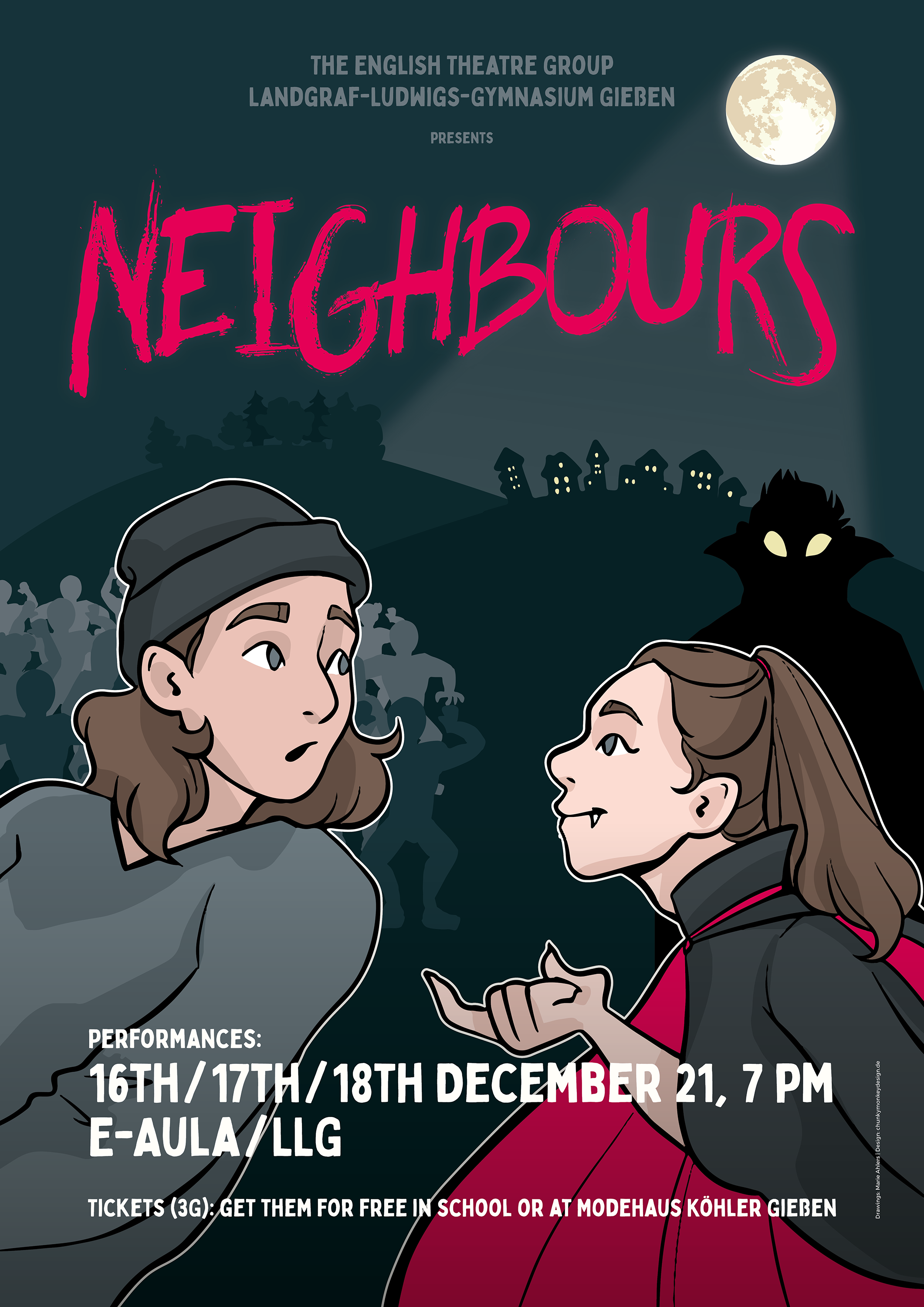 NeighboursDie English Theatre Group des Landgraf-Ludwigs-Gymnasiums konnte sich zum zweiten Mal für die Theaterwoche in Korbach qualifizieren. Mit Ihrer Inszenierung des Stücks ,,Neighbours‘‘, welches die Gruppe bereits im Dezember letzten Jahres aufführte, haben die Darsteller das Kuratorium des ältesten noch bestehende Amateurtheaterfestival Deutschlands überzeugen können. Die English Theatre Group wird an der Seite von Theatergruppen aus Aachen, München, Münster, Kassel, Halstenbek, Neuss und St. Vieth/Belgien vom 23.5.2022 bis 28.5.2022 die Woche erleben dürfen.