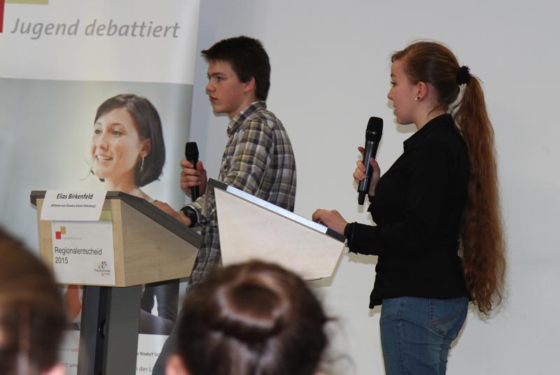 „Jugend debattiert“ hat feste Regeln: Je vier Schüler bestreiten eine 24‑Minuten‑Debatte. Zwei vertreten die Pro ‑, zwei die Kontra ‑ Seite. Jeder hat zu Beginn zwei Minuten ungestörte Redezeit, in der er seine Argumente darlegen kann. Anschließend folgen zwölf Minuten freie Aussprache. Für das Schlusswort steht jedem Teilnehmer noch einmal eine Minute zur Verfügung. Anschließend werden Sachkenntnis, Ausdrucksvermögen, Gesprächsfähigkeit und Überzeugungskraft der vier Redner von der Jury bewertet.
