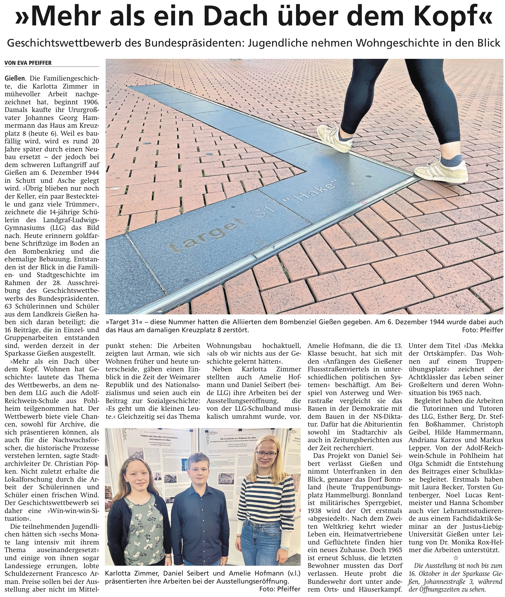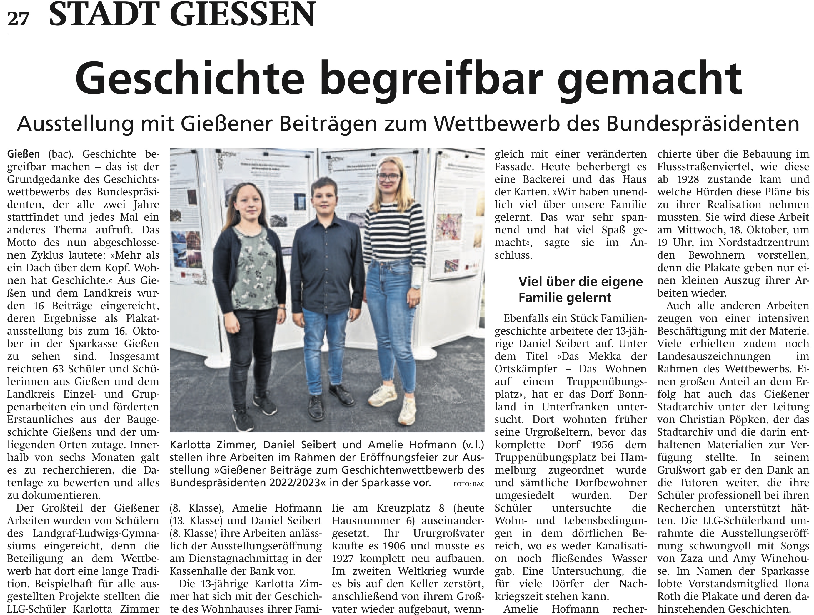 Ebenfalls wurden sämtliche eingereichte Geschichten zum Thema „Helden“, die von Schülerinnen und Schülern des 9. Jahrgangsstufe im vergangenen Schuljahr im Deutschunterricht bei Frau Flemming, Frau Bräutigam, Frau Schön, Frau Zander und Herrn Socha verfasst wurden, mit einem 150 € dotierten Gruppensonderpreis ausgezeichnet. Diesen Preis nahmen stellvertretend für alle Johanna Schuhmann, Hannah Marie Mailliart und Niklas Lenz im Kursaal des Dolce in Bad Nauheim entgegen. Schulleiterin Frau Pfannmüller, Fachbereichsleiter Herr Dr. Botor und Frau Pfister gratulierten den Preisträgerinnen und Preisträgern zu ihrem Erfolg.