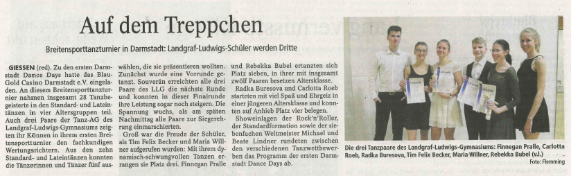 Bei der diesjährigen Austragung des Mathematikwettbewerbs des Landes Hessen, der jährlich in den achten Klassen durchgeführt wird, wurden die besten Schülerinnen und Schüler des Jahrgangs geehrt. Die höchste Punktzahl erreichte Ben Hainmüller mit 45,5/48 Punkten. Einen halben Punkt weniger erreichte Johannes Urich, 43 Punkte Judith Beck und Annika Hufschild, 42,5 Punkte Inga Ströde und Luise Gaßmann. Alle Schulsieger werden das LLG am 4. März bei der zweiten Runde des Wettbewerb vertreten, bei der sie sich mit den Siegern der anderen Schulen des Landkreises messen werden.