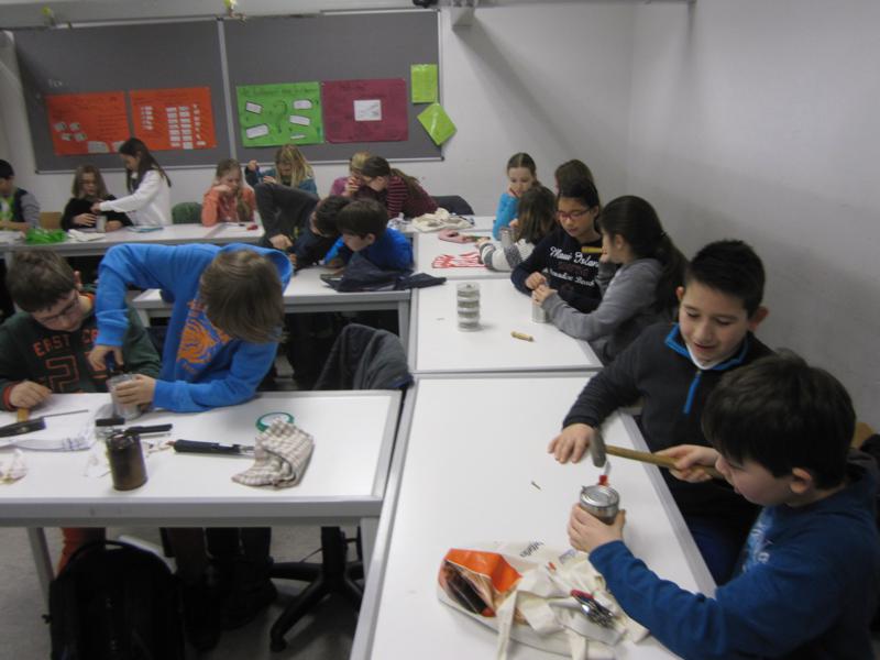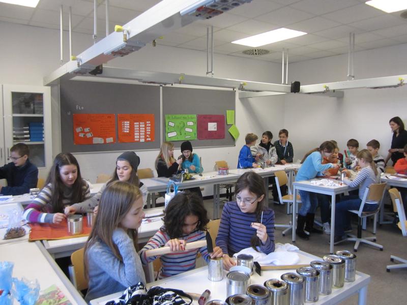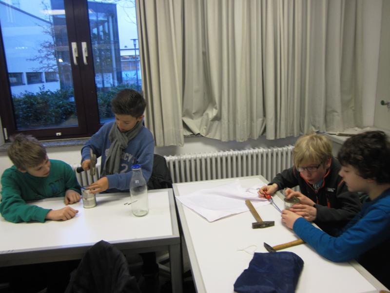 Kurz vor den Halbjahreszeugnissen besuchte Frau Dr. Claudia Kammann die Science Klassen des Jahrgangs 5, um ein Experiment zur Senkung der Kohlenstoffdioxidkonzentration in der aAtmosphäre durchzuführen. Dieses anspruchsvolle Thema band die Biologin der JLU geschickt in ein handwerkliches Projekt ein: den Bau eines Pyrolyse-Ofens. Pyrolyse ist, vereinfacht beschrieben, eine unvollständige Verbrennung, bei der Kohle statt Asche zurückbleibt. Diese Biokohle bindet den, in den als Brennmaterial eingesetzten Pflanzenmaterialien enthaltenen Kohlenstoff länger, als es verrottende Pflanzenabfälle täten. Die Verringerung der Kohlenstoffdioxidkonzentration, als eine Gegenmaßnahme zum Klimawandel, ist so möglich. Zudem kann die Biokohle wieder als Brennmaterial (kochen, heizen, Licht) eingesetzt werden, oder zur Bodenverbesserung in die Äcker eingebracht werden.